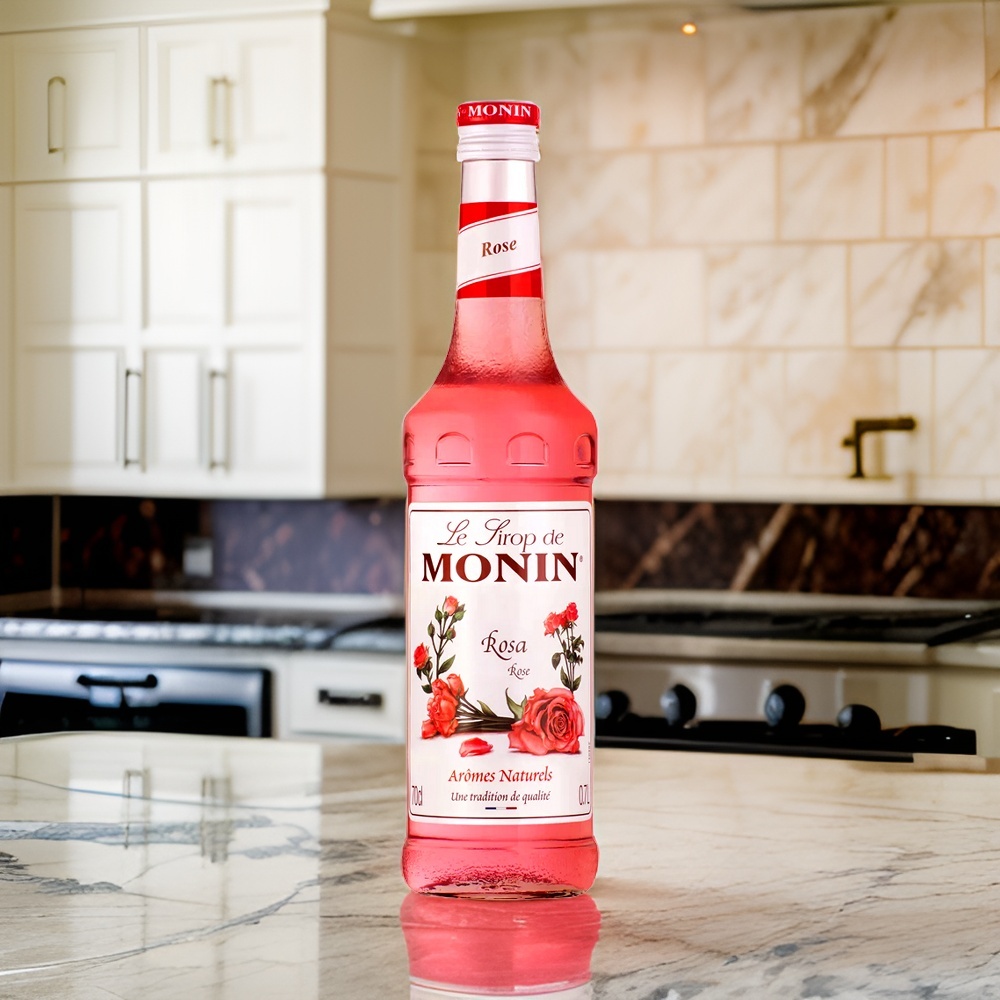 Ingredientes: Açúcar de beterraba , água, extrato natural de rosa, aromatizantes naturais, colorido, artificialmente com corante vermelho 40 e colorido artificialmente com corante azul brilhante, não contém glúten. Características: Monin é uma bebida resultante da combinação perfeita de açúcar puro de cana com extratos naturais de frutas, nozes e flores. - Elaborado a base de extratos naturais- Altamente concentrado- Não é alcoólico- Sem conservantes. Dicas de uso e consumo:- Experimente-o com morangos frescos esmagados em um Martini. Você pode até mesmo misturar com calda de caramelo MONIN para o café com leite incrível.- Experimente adicionar Monin Rosas a um espumante e decore com pétalas de rosas.- Chás- Coquetéis- Vinhos - Espumantes- Leites