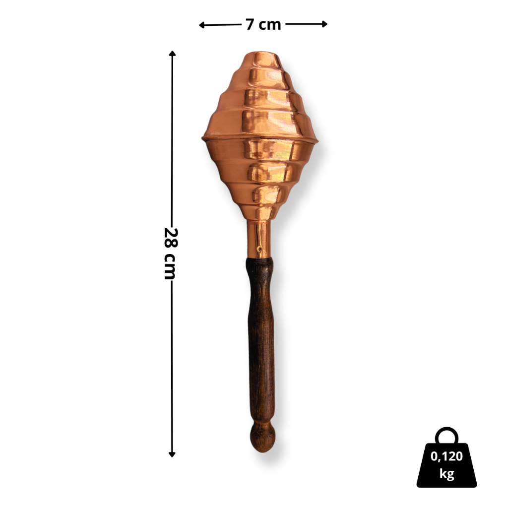 Apresentamos a você o Xeré de Cobre! Ele é utilizado como chocalho nos cultos do Orixá Xangô, em trabalhos e rituais de Umbanda e Candomblé. Além disso, ele também é um incrível item que pode ser utilizado na sua decoração. Ao utilizar essa poderosa substância durante seus rituais e práticas religiosas, você estará se conectando com as forças ancestrais de Xangô, orixá associado à justiça, sabedoria e poder. Não perca mais tempo! Seja você um praticante do Candomblé, Umbanda ou alguém em busca de um caminho espiritual mais profundo, o Xeré de Xangô está aqui para apoiá-lo. Compre já o seu! Medidas do Produto: Comprimento: 28 cm Diâmetro: 7 cm Peso: 120 g Atenção: Por se tratar de um produto artesanal o peso e as medidas podem sofrer pequenas variações.