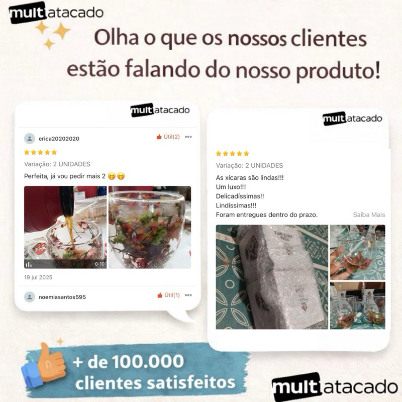 🏭 MultiAtacado – da fábrica para sua casa 🏡 🔴 SIGA A LOJA e ganhe cupom exclusivo de desconto 💳 🔴 Clique em VER LOJA e resgate cupons especiais 🥳 PAGUE MENOS E LEVE MAIS 🛒 🔥 DESCONTO POR QUANTIDADE Quanto mais unidades você compra, menor fica o valor por unidade. Garanta até 10% ou mais de economia no seu pedido. Leve mais, pague bem menos e ainda aproveite para presentear gastando pouco 🎁 🌸 Xícara de Vidro Duplo com Flores Naturais – 250ml Encante seus momentos com essa xícara luxuosa de 250ml, feita em vidro reforçado de parede dupla, que mantém sua bebida quente por mais tempo e não esquenta por fora. Cada peça possui flores secas selecionadas à mão, criando um visual delicado, exclusivo e sofisticado. ✨ Elegante 🔥 Conserva melhor a temperatura 💎 Resistente e durável 🎁 Perfeita para presentear Ideal para café, cappuccino ou café com leite com muito mais charme.