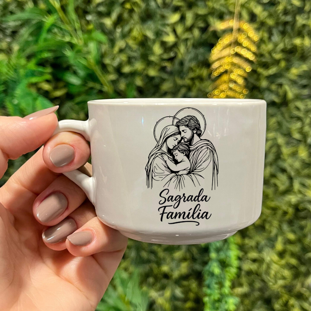 Xícara Pequena Sagrada Família Uma peça cheia de fé e significado para o seu dia a dia! A xícara pequena da Sagrada Família traz um design delicado e inspirador, representando a união e o amor entre Jesus, Maria e José. Perfeita para quem deseja começar a manhã com espiritualidade ou presentear alguém especial. ✨ Características: • Material: porcelana de alta qualidade • Tamanho: pequeno (ideal para café) • Estampa exclusiva da Sagrada Família • Durável, prática e fácil de limpar Uma linda lembrança religiosa para abençoar sua casa e seus momentos de oração.