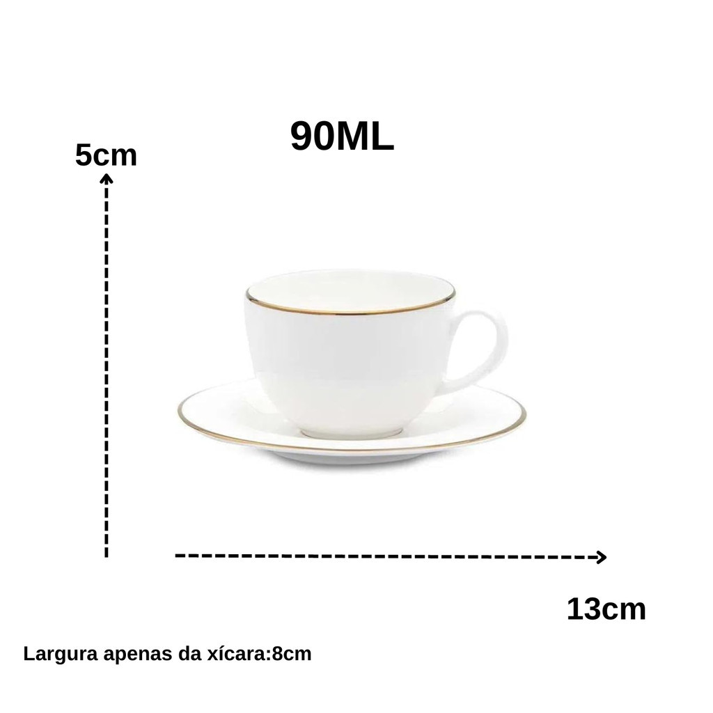Xicara De Café Com Pires Porcelana Borda Dourada 90ml Luxo Legacy Gold