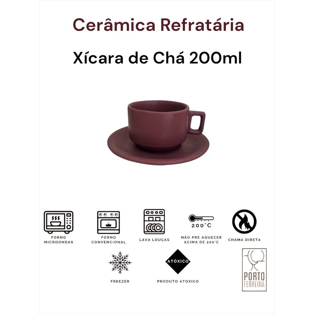 Xícara de Chá c/ Pires Cerâmica Rústica 200 ml Várias Cores Disponíveis
