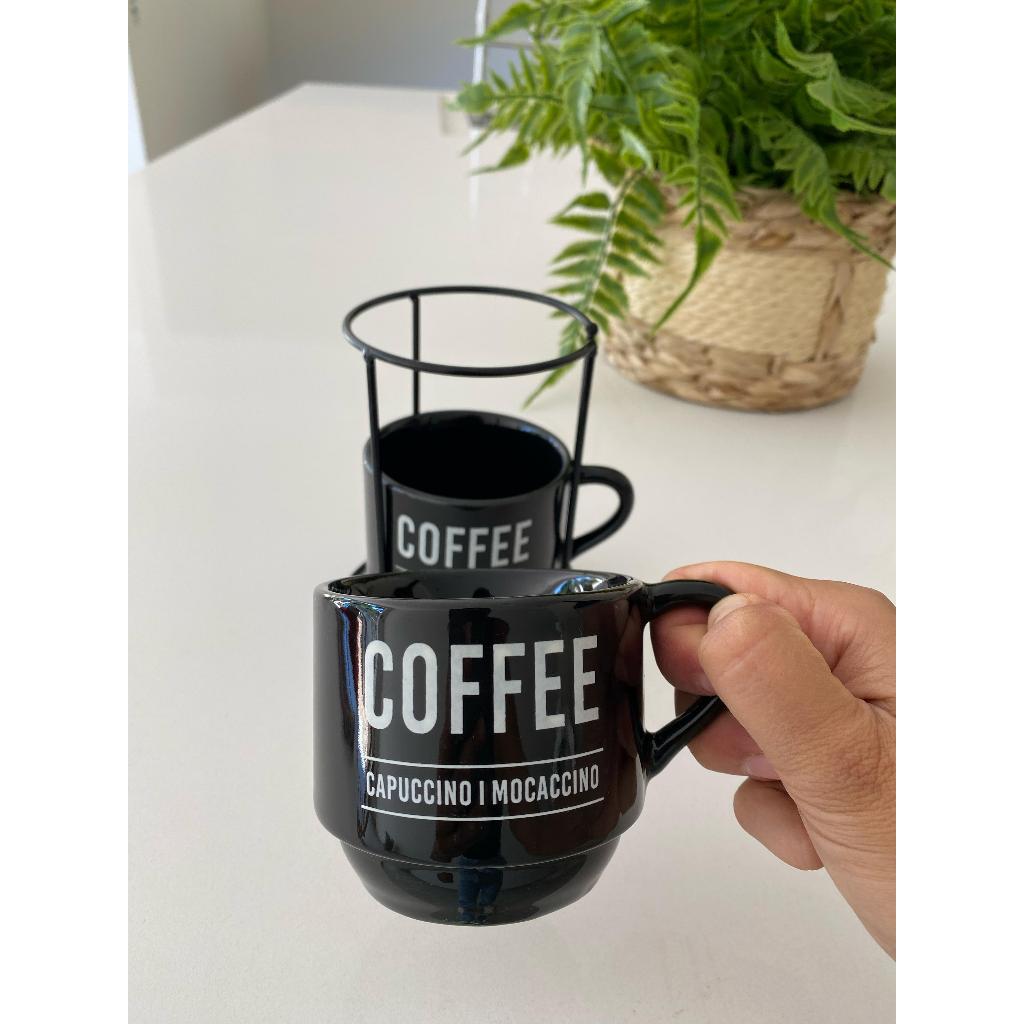 Xicara Empilhavel Coffee Capuccino Mocaccino Branca Preta 200 ml Café Chá