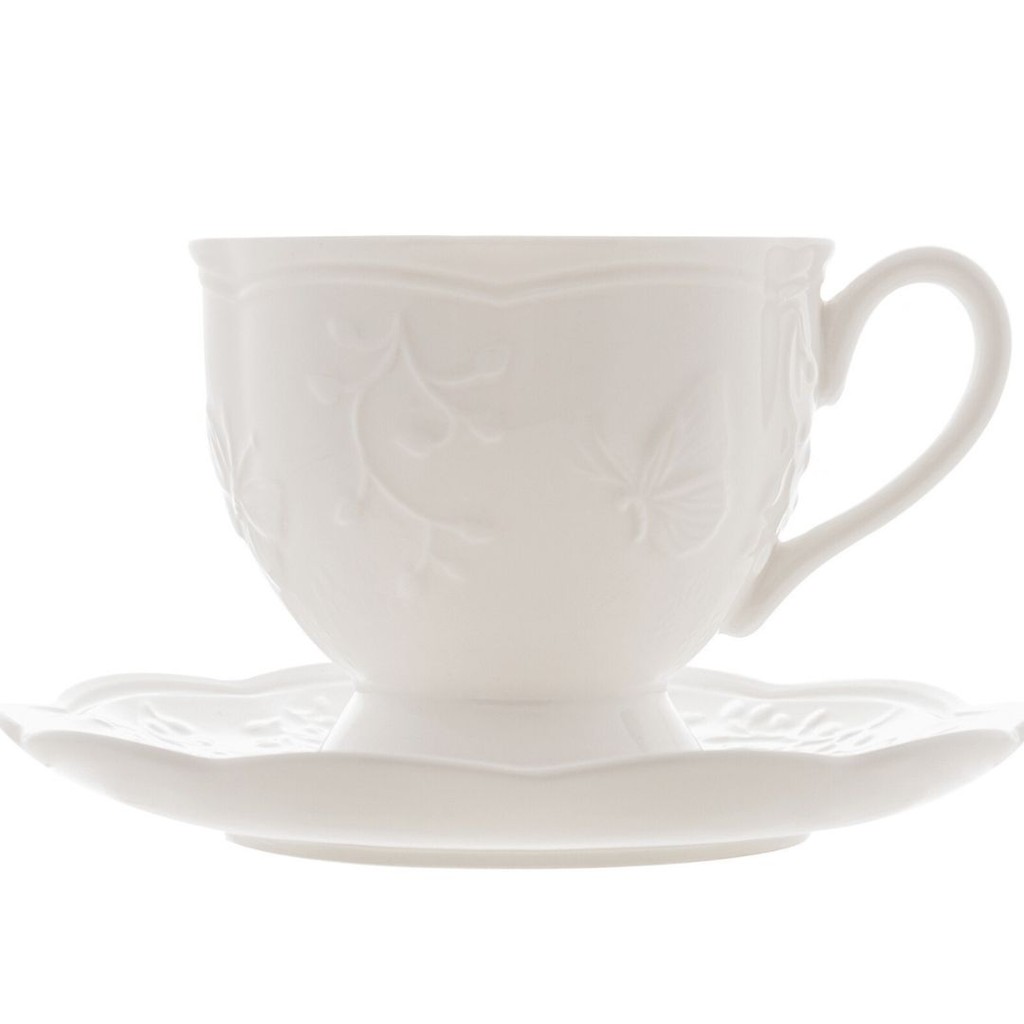 Xícara P/ Chá C/ Pires em Porcelana Butterfly Flower 200ml - Lyor