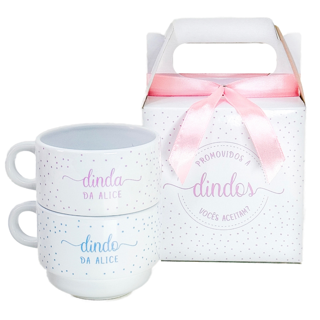 KIT XÍCARAS CONVITE BATISMO E CAIXINHA KIT COMPLETO >>> ESCOLHA CORES E QUANTAS XÍCARAS POR CAIXA Sem dúvida, este é um excelente convite de batismo. Único, criativo e especial para convidar o casal que vai batizar o seu/sua filhote/a. O padrinho e a madrinha vão adorar! MONTE O KIT COMO PRECISA COM 1 ou 2 XÍCARAS - 1 caixinha de papel estampada na frente - 1 ou 2 xícaras de cerâmica branca PREMIUM, 150ml - 1 papel seda interno - 1 fitinha com fecha-fácil em metal *Não inclui outros itens decorativos apresentados nas imagens do anúncio COMO PERSONALIZAR? Após a compra, envie os dados de personalização por mensagem: - NOMES DA CRIANÇA - NOME DO(AS) DINDO(AS) - CORES DAS ESTAMPAS DAS XÍCARAS: rosa, lilás, azul, verde, amarelo, vermelho, cinza ou preto. - COR DA FITA: rosa, lilás, azul, verde, amarelo, vermelho ou branco. *Se não houver estoque, será enviada outra cor que combine com a estampa ou branco. >>>>>>>>> IMPORTANTE >>>>>>>>> envie os dados imediatamente após a compra para que seu pedido seja produzido e despachado no prazo obrigatório. Caso contrário, poderá ser enviado sem personalização. QUAL É O PRAZO DE ENTREGA? Você precisa fornecer o CEP de entrega para que a plataforma calcule o dia estimado em que o pedido chegará para você. Não temos acesso a essas informações. O PRODUTO TEM GARANTIA? Claro! Qualquer problema que possa surgir, basta contactar-nos para encontrarmos uma solução o mais rapidamente possível. Mas fique tranquilo, pois nossos produtos passam por controle de qualidade e são bem protegidos para transporte. CUIDADOS COM O PRODUTO Caneca: para lavar utilize apenas sabão e esponja macia. O uso de produtos ásperos e abrasivos pode danificar a xícara. Para melhor durabilidade da estampa, não lave na máquina de lavar louça. Caixinha: manter em local seco e não expor à luz intensa e umidade. convite de batismo, convite de xícara de batismo de padrinhos, xícara de padrinho, xícara de madrinha, lembrança de batismo, convite de batismo, kit de xícara para padrinhos de batismo, xícara caixa kit de batismo, personalizado, caneca de batismo