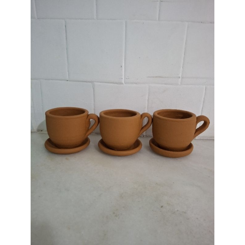 Xícaras de Barro com Pratinho - kit com 3, 5 ou 10 xícaras
