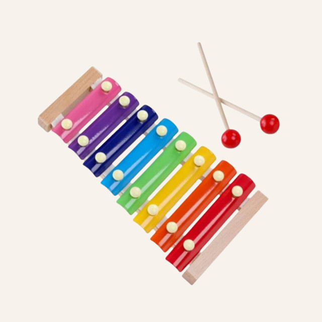 Xilofone Piano Metal Criança Colorido 8 Notas Infantil Madeira ToyMix
