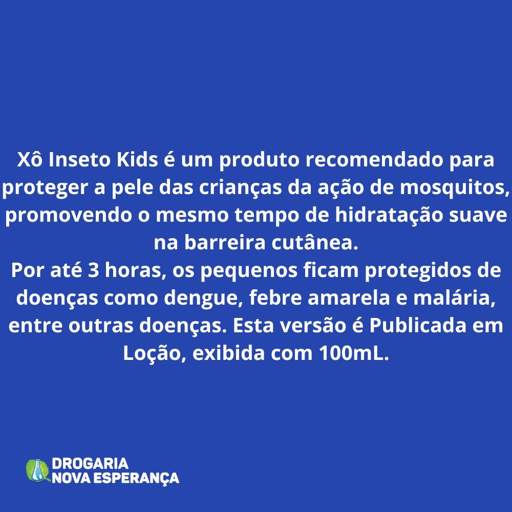 Xô Inseto Kids é um produto recomendado para: - Proteger a pele das crianças da ação de mosquitos, promovendo ao mesmo tempo uma hidratação suave na barreira cutânea.