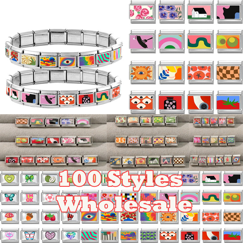 Y2K Atacado Coração Flores Italiano Charme Link Caber 9mm Jóias De Aço Inoxidável DIY Fazendo Pulseiras Femininas Presen