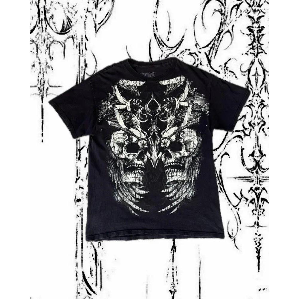 Y2K Retro Hip-Hop Tendência Padrão Impressão Camiseta Masculina Rua Americana Harajuku Moda Solta Casal Camisa De Manga