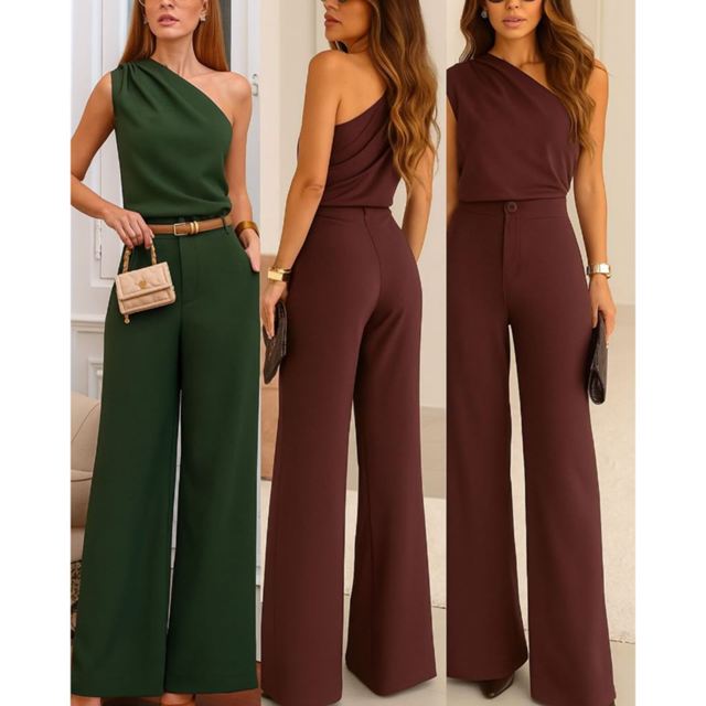 YAN FASHION Conjunto Alfaiataria Um Ombro Só e Calça Pantalona Feminina Elegante