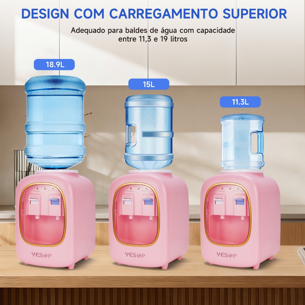 YESOP Bebedouro de Mesa Elétrico Refrigerado para Garrafão 10L/20L Bivolt (127V/220V)Rosa