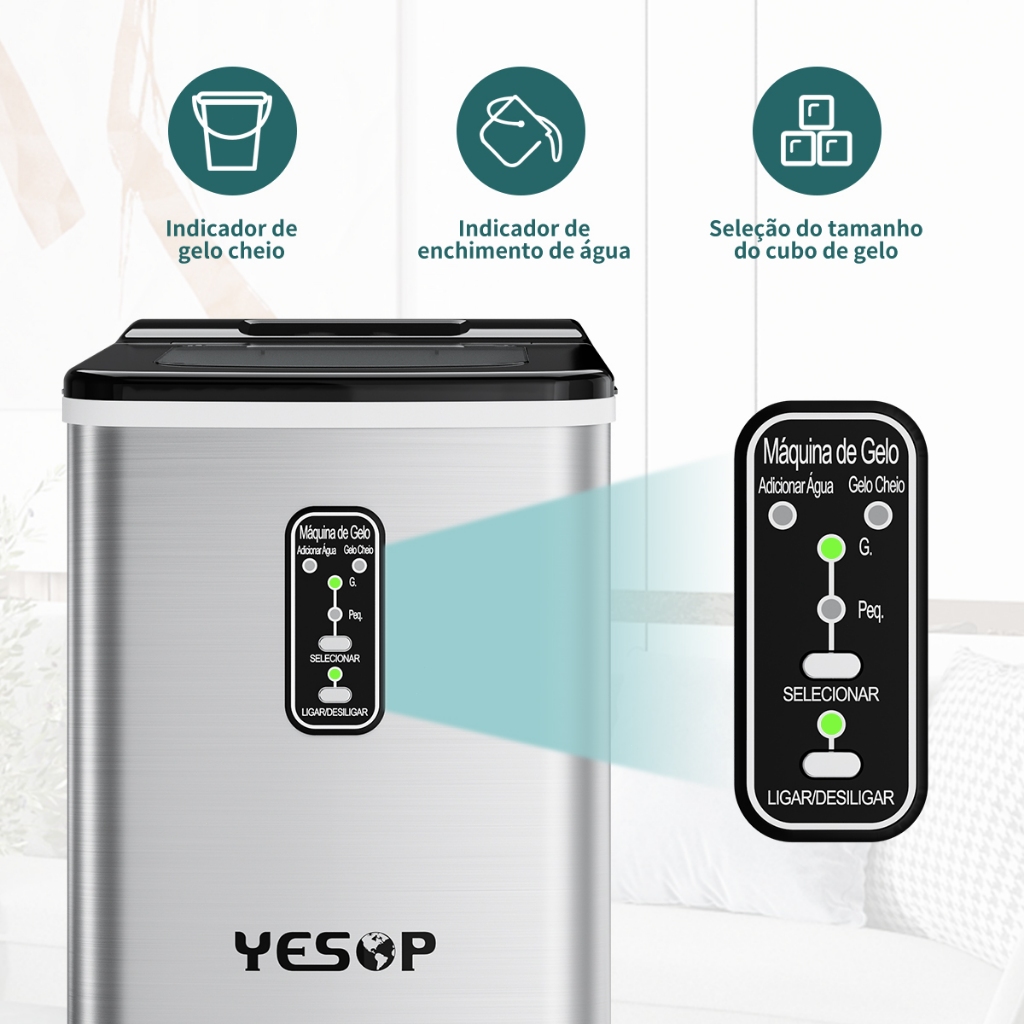 YESOP Máquina De Gelo Turbo Ice Premium 110V/127V Portátil Inox 120W Cozinha Profissional Automático