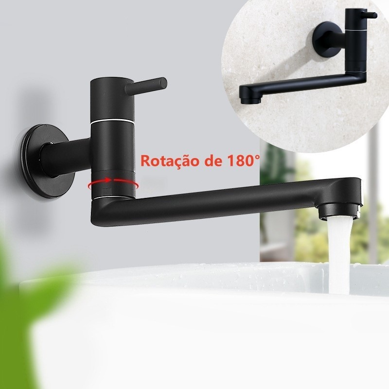 YESOP Torneira De Parede Para Cozinha Aço Inox 304 Gourmet Bica Móvel Flexível Preto Fosco 25cm