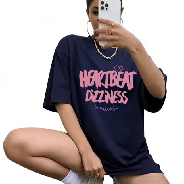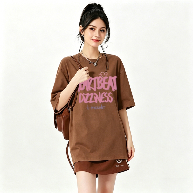 yikoo - Camiseta feminina algodão puro folgada de manga curta com estampa de letras em rosa