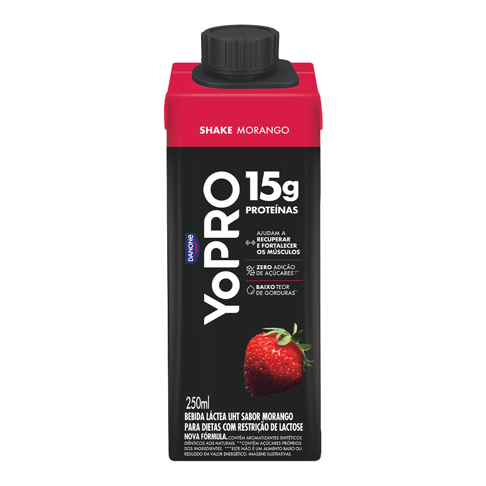 Potencialize seus treinos com YoPRO Bebida Láctea UHT Morango 15g de proteínas 250ml - 12 unidades!YoPRO é a marca especialista em criar produtos com alto teor de proteínas, práticos e deliciosos para quem busca uma rotina ativa e saudável. YoPRO é proteína, sabor e praticidade para sua rotina. Você pode consumir seu YoPRO Shake Proteico UHT 15g de proteínas a qualquer momento, seja como parte do seu café da manhã, como lanche entre as refeições ou antes e depois dos treinos. Sua fórmula prática e deliciosa permite que você o leve para onde quiser, seja na academia ou no trabalho.É essencial para você que busca um estilo de vida ativo e saudável, além de com o seu consumo de proteínas diárias, é um aliado para sua performance física e seu bem-estar, complementando a sua rotina de forma saudável e saborosa. YoPRO É MAIS PROTEÍNA, SABOR E PRATICIDADE PARA SUA ROTINA. Experimente e vá além!Ingredientes: leite parcialmente desnatado, concentrado proteico de soro de leite, cacau hidratado, amido modificado, concentrado proteico de leite, soro de leite em pó, enzima lactase, aromatizantes, estabilizantes celulose microcristalina, carboximetilcelulose, carragena, fosfato dipotássico e fosfato dissódico e edulcorante sucralose. NÃO CONTÉM GLÚTEN. ALÉRGICOS: CONTÉM LEITE E DERIVADOS. PODE CONTER SOJA.