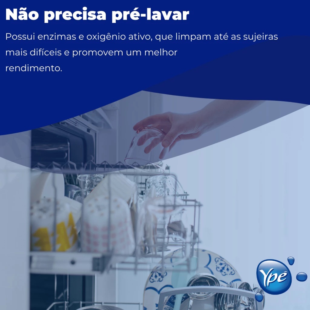 O Lava-louças em Pó para Máquina Ypê é a escolha ideal para a limpeza da sua louça. Com uma fórmula exclusiva, oferece alta eficiência e ação secante, eliminando a necessidade de adicionar líquido secante e abrilhantador. É o único que proporciona controle de odor das louças e da máquina. Dispensa a pré-lavagem, graças às enzimas e ao oxigênio ativo que removem as sujeiras mais resistentes. Além disso, é econômico, pois rende até 18 lavagens com uma dosagem menor por ciclo. Com o Lava-louças em Pó para Máquina Ypê, você tem praticidade e economia de tempo. Contem 1 Pote 450g
