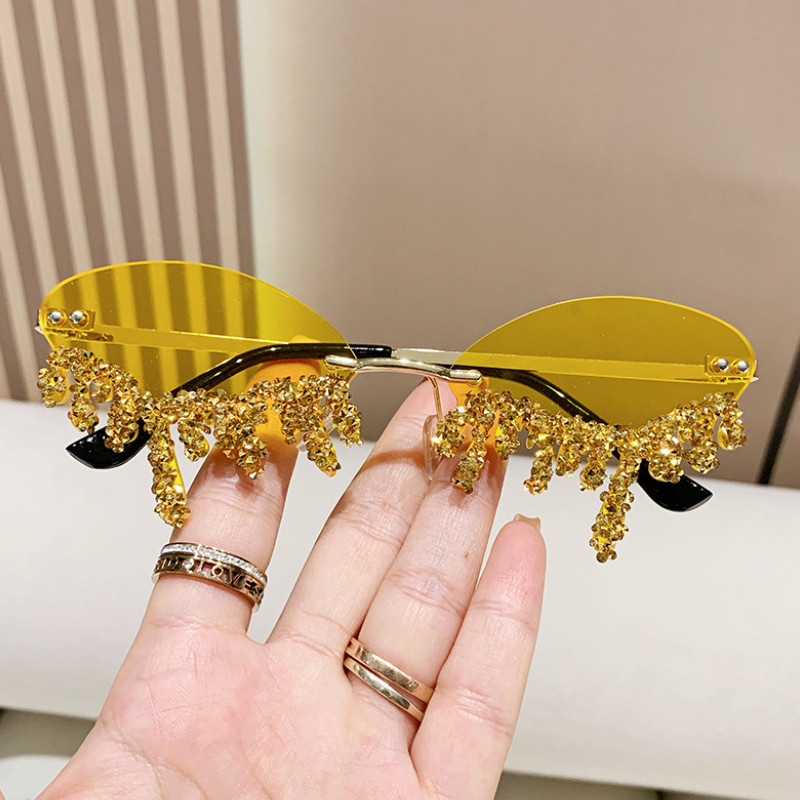 (YUZHU) Lágrimas De Anjo Óculos De Sol Diamante Feitos À Mão Candy Color Rimless Para Mulheres