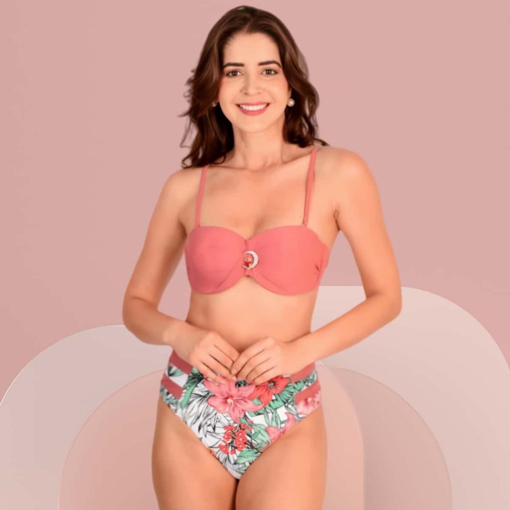 Z&D Lingerie Biquini Conjunto Com Aro e Bojo Calcinha Cintura Alta Shortinha B6803