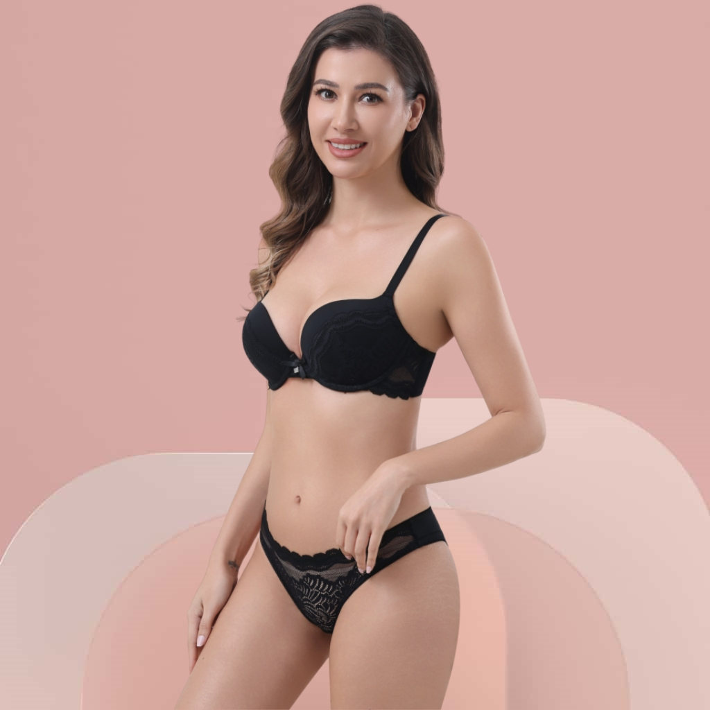 Z&D Lingerie Conjunto Com Aro Com Renda De Bordado e Bojo Calcinha Tanga 8088