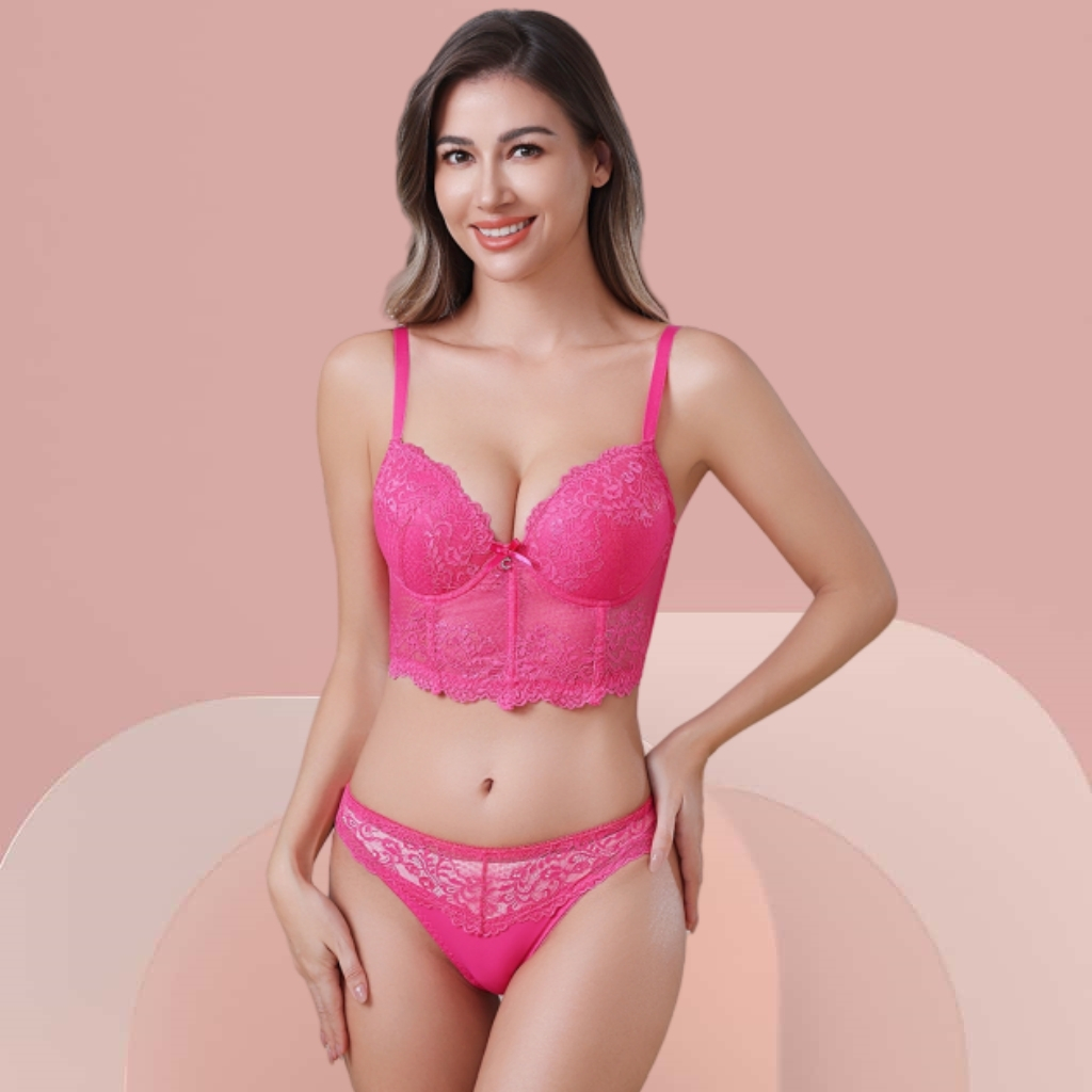 Z&D Lingerie Conjunto Costas Largas Estilo Cropped Com Aro Com Bojo e Renda Calcinha Fio Dental 8071