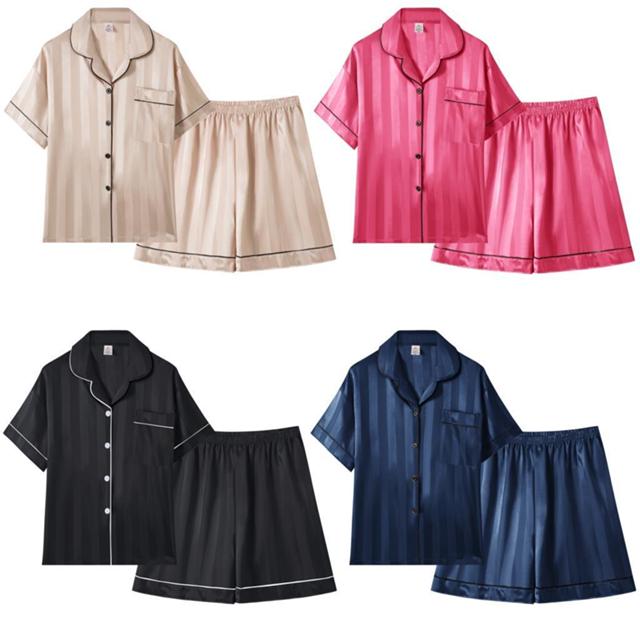Bem-vindos a 【Z&D Lingerie】,Insistimos no menor preço para vender os melhores itens de qualidade!! Com um acabamento levemente em listras reluzente, o tecido acetinado traz um brilho e charme extra ao modelo, proporcionando um visual refinado e moderno. Além de lindo, o toque é extremamente macio e agradável na pele, garantindo conforto absoluto durante toda a noite. A camisa de manga curta possui modelagem clássica estilo americano, com botões frontais, gola estruturada e bolso delicado, trazendo charme e praticidade. O short conta com cós elástico e caimento soltinho, oferecendo liberdade de movimento e ajuste perfeito. Cores Disponíveis * Nude * Pink l * Preto * Azul marinho
