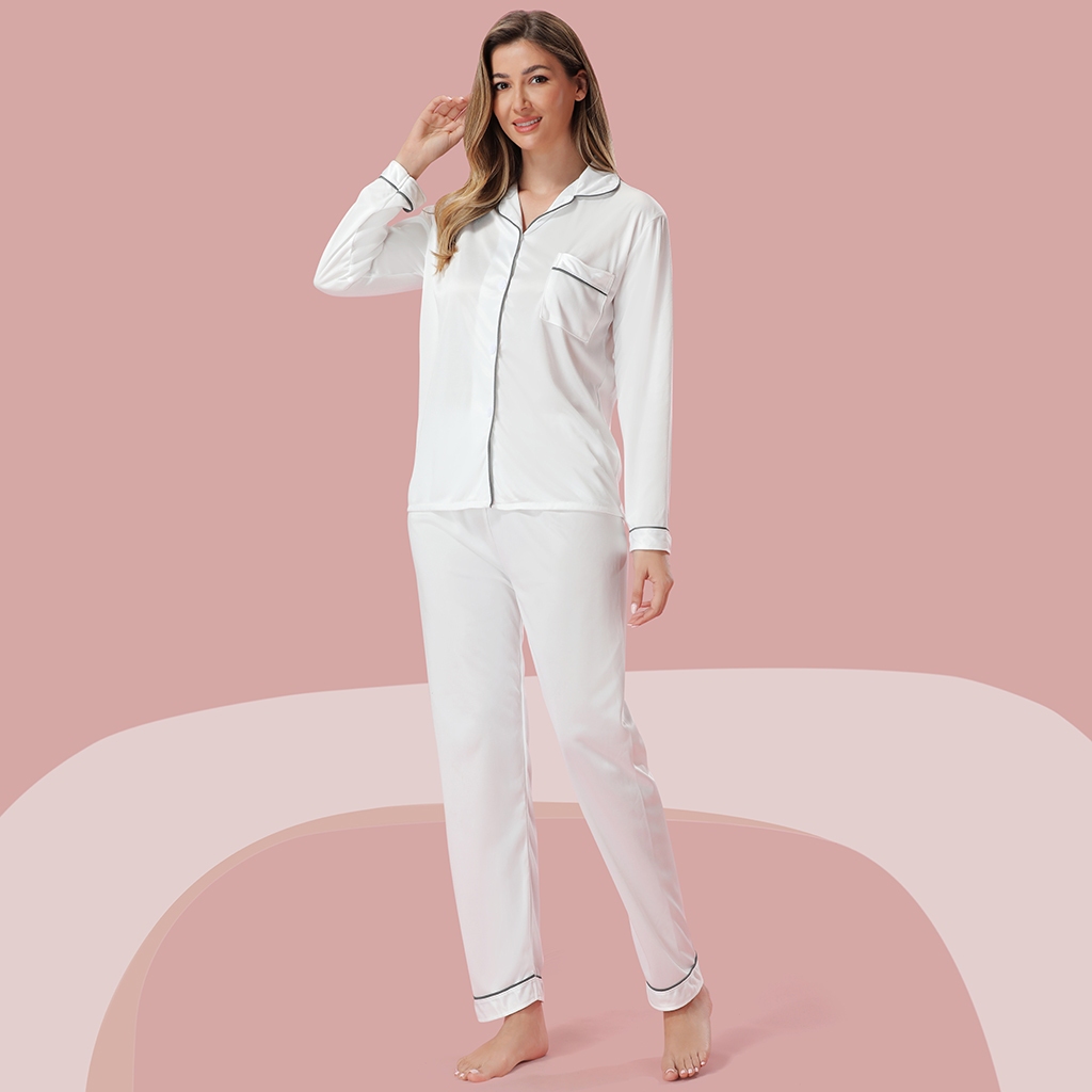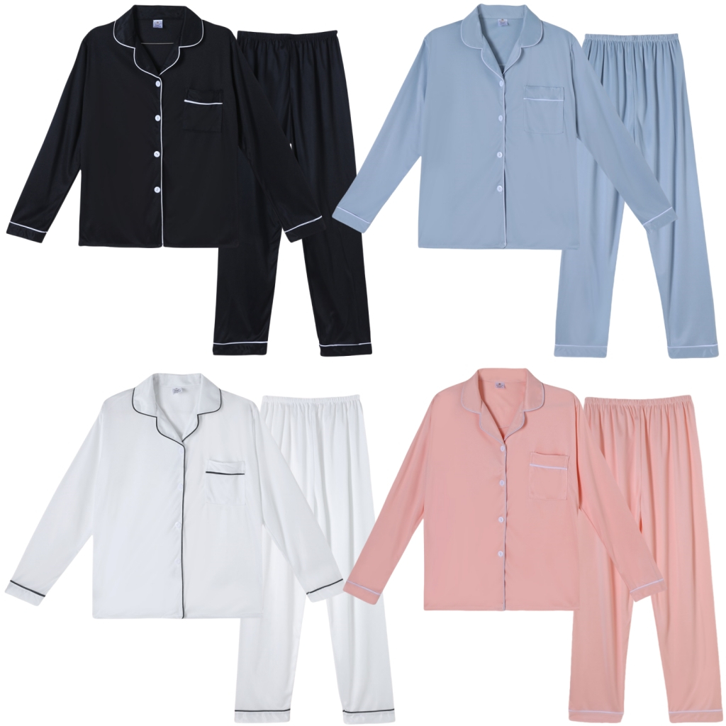 Z&D Lingerie Pijama Feminino Manga E Calça Longa Aberto Com Botão Lisa SY13