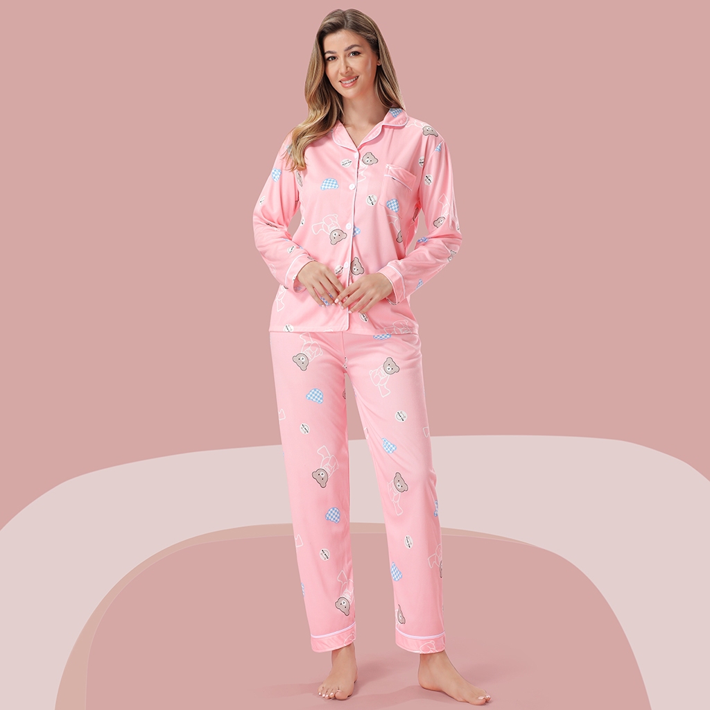 Z&D Lingerie Pijama Feminino Manga E Calça Longa Aberto Com Botão SY12