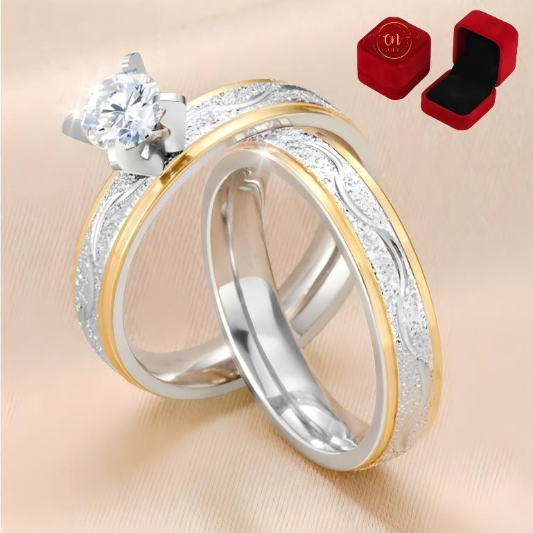 Z.W BIJUX - Aliança de casamento em aço inoxidável de 4 mm com diamantes Com/Sem Caixinha