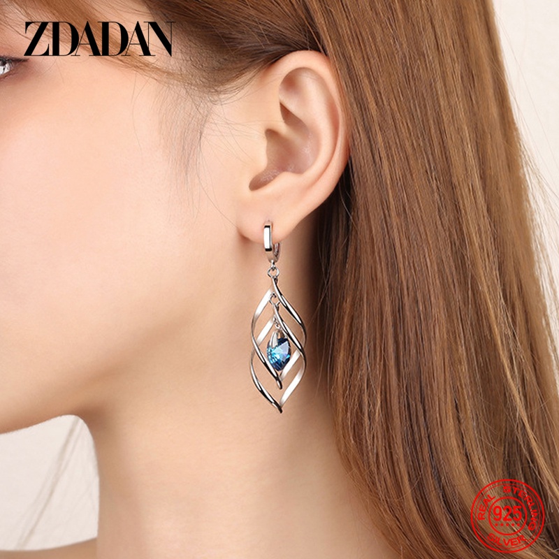 ZDADAN 925 Brincos De Cristal Azul Oco Longo Para Mulheres Moda Jóias De Casamento Presente