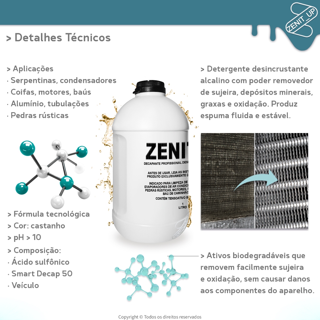 Zenit Up Limpador P/ Ar Condicionado, Serpentina, Condensadora, Máquinas - Desincrustante Ácido Pro