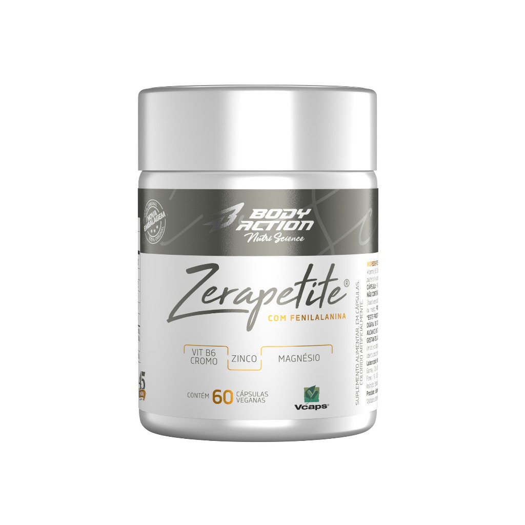 ZERAPETITE® INGREDIENTES: L-Fenilalanina, Magnésio (Óxido de Magnésio), Zinco (Bisglicinato de Zinco), Vitamina B6 (Cloridrato de Piridoxina), Cromo (Picolinato de Cromo), Espirulina (Arthrospira platensis) e Antiumectantes Estearato de Magnésio. INGREDIENTES DA CÁPSULA: HPMC (hidroxipropilmetilcelulose), Água purificada e Corante Dióxido de Titânio. NÃO CONTÉM GLÚTEN. SUGESTÃO DE USO: Sugere-se a ingestão de 1 (uma) cápsula, 2 (duas) vezes ao dia, 30 minutos antes das refeições ou conforme recomendação de nutricionista ou médico. PRODUTO INDICADO PARA MAIORES DE 19 ANOS. ADVERTÊNCIAS: “ESTE PRODUTO NÃO É UM MEDICAMENTO”. “NÃO EXCEDER A RE-COMENDAÇÃO DIÁRIA DE CONSUMO INDICADA NA EMBALAGEM”. “MANTENHA FORA DO ALCANCE DE CRIANÇAS”. “ESTE PRODUTO NÃO DEVE SER CONSUMIDO POR GESTANTES, LACTANTES E CRIANÇAS”. CONSERVAÇÃO: Manter em lugar fresco, não úmido e ao abrigo da luz. Não consumir o produto se o lacre de proteção estiver violado. Após aberto, consumir preferencialmente em 60 dias. _____________________________________________________________ Uma nutrição equilibrada tem um papel muito importante na qualidade de vida. Com o ritmo acelerado de muitas pessoas, às vezes, é muito difícil prestar atenção a todos os requisitos que o corpo precisa para estar saudável e forte. Neste sentido, os suplementos cumprem a função de complementar a alimentação e ajudam a obter as vitaminas, minerais, proteínas e outros componentes indispensáveis para o correto funcionamento do organismo. *Este produto é um suplemento dietético, não é um medicamento. Suplementa Ante dietas insuficientes. Consulte seu médico e / ou farmacêutico.