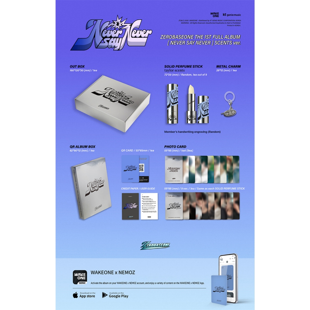 | ZEROBASEONE - 1st Album [ Never Say Never]_SCENTS ver este produto | R$ 219,00 | 20% | 5.0/5 | 1 |