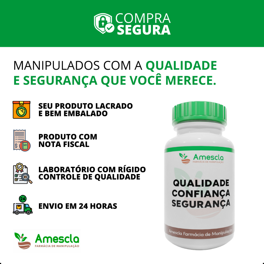 Composição: Zinco Quelato (cada 1 cápsula contém 30mg). Excipiente qsp. (Sem Glúten - Sem Lactose - Sem Açúcar) Instruções de Uso: Tomar 1 cápsula ao dia antes das refeições ou conforme orientação de um profissional de habilitado. Validade: 6 meses após a data de fabricação. Ficou com alguma dúvida? Chame a nossa equipe no chat, será um prazer te atender! Avisos e Contraindicações: -Não exceder a dose recomendada. -Gestantes, nutrizes, crianças e pessoas com doenças crônicas devem consultar um médico ou nutricionista antes de usar o produto. -Pessoas com hipersensibilidade à substância não devem ingerir o produto. -Este produto é um suplemento alimentar, não um medicamento. -Mantenha fora do alcance de crianças. -Manter em temperatura ambiente (15 a 30ºC). Proteger da luz, do calor e da umidade. -Produto lacrado para sua proteção, não utilizar em caso de violação. -Imagens meramente ilustrativas. Produto isento de registro em conformidade com o anexo I da RDC 27/2010, e com a EDC 23/2000 da ANVISA