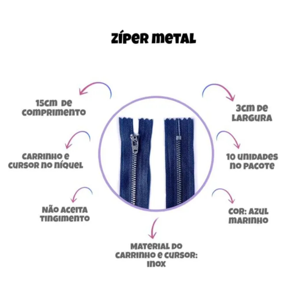 Zíper Metálico Fixo para Calça Jeans - 15cm (Pacote com 10 Unidades) Descrição do Produto: Os zíperes metálicos fixos para calça jeans são essenciais para quem busca durabilidade e estilo. Com uma medida de 15cm, este zíper é ideal para a confecção ou reparo de calças jeans, proporcionando um fechamento seguro e eficiente. A sua construção em metal garante resistência ao desgaste, além de um acabamento que combina perfeitamente com o jeans. Características: Tamanho: 15 cm (ideal para calças jeans de cintura) Material: Metal de alta qualidade, resistente à corrosão e ao uso prolongado Design: Zíper fixo, que se posiciona de forma precisa e mantém a integridade do design da peça Cor: Disponível em acabamentos variados, como prateado ou dourado, para atender diferentes estilos Pacote com: 10 unidades, perfeito para quem realiza costuras em grande quantidade ou para pequenos negócios da moda Benefícios: Durabilidade: O material metálico não só confere uma aparência elegante, mas também garante maior vida útil ao produto. Versatilidade: Pode ser utilizado em diversos tipos de calças, como jeans, leggings e outros tipos de vestuário. Fácil de Usar: A instalação do zíper é simples, permitindo que tanto profissionais quanto iniciantes em costura possam utilizá-lo sem dificuldades. Sugestões de Uso: Ideal para os profissionais da moda, costureiros e até mesmo para projetos de DIY (faça você mesmo). Utilize esses zíperes em confecções de roupas, ajustes ou customizações, e dê um toque de qualidade às suas peças. Cuidados: Evite exposição a produtos químicos agressivos que possam danificar o metal. Para limpeza, use um pano úmido e suave.