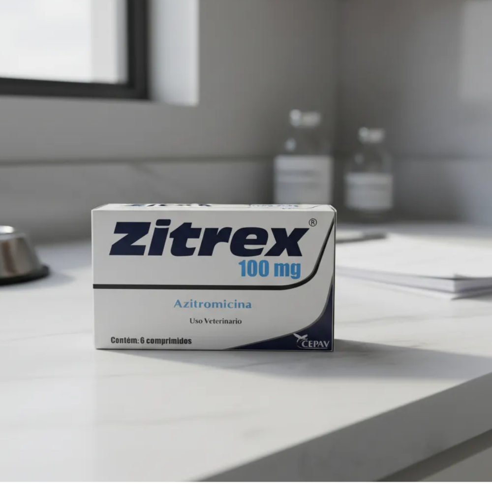 MEGA PROMOÇÃO POR TEMPO LIMITADO, ENQUANTO DURAREM O ESTOQUE, NÃO PERCA ESTA OPURTUNIDADE ULTIMAS UNIDADES PRODUTO ORIGINAL + LACRADO + PRONTA ENTREGA. ATENÇÃO ! MUITO CUIDADO COM PRODUTOS FALSOS, NOSSOS PRODUTOS SÃO ADQUIRIDOS DIRETAMENTE DO LABORATÓRIO, AQUI A AUTENTICIDADE É GARANTIDA. Zitrex 100mg é um suplemento antibiótico desenvolvido pela marca Cepav, especialmente formulado para cães e gatos. Com a potente azitromicina como ingrediente ativo, este produto é ideal para tratar infecções bacterianas em animais de estimação, garantindo uma recuperação rápida e eficaz. Disponível em formato de pó, o Zitrex é fácil de administrar e pode ser misturado à comida do seu pet, tornando a experiência mais agradável. Recomendado para filhotes e adultos de todas as raças, Zitrex vem em uma embalagem prática com 6 unidades de 20 mL cada. Seu sabor de mirtilo é uma adição que facilita a aceitação do suplemento pelos animais, tornando o tratamento menos estressante. Além disso, o produto é livre de glúten, o que o torna uma opção segura para pets com sensibilidades alimentares. A saúde do seu animal de estimação é uma prioridade, e com Zitrex, você pode ter a certeza de que está oferecendo um tratamento de qualidade. Este suplemento não só combate infecções, mas também contribui para o bem-estar geral do seu cão ou gato. Escolha Zitrex e proporcione ao seu pet a saúde que ele merece.