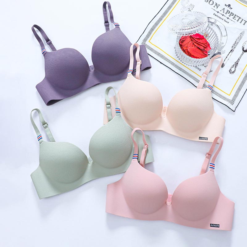 ZXYOUPING peito pequeno Sutiã Push Up Sem Costura Estilo Britânico Seda Fria Lingerie Feminino