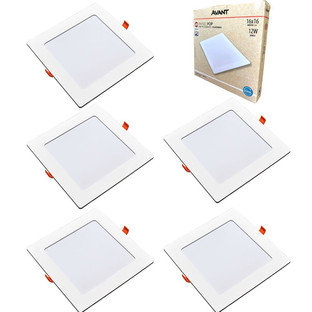 Kit 5 Painéis Plafon Quadrado Embutir 12W Luz Branca 6500K Luminária de Gesso Forro 127v 220v Avant em Oferta na Shopee Shopee