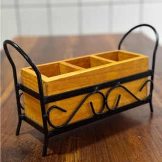 Porta Talher e Utensílios Ferro e Madeira - Mesa posta - Decoração em Oferta na Shopee Shopee