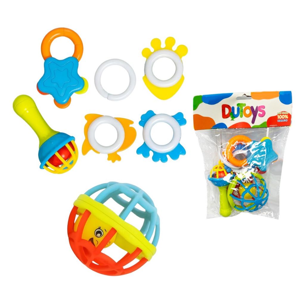 Kit 7pcs Brinquedo Chocalho Soft Macio Silicone Para Bebes Bolinha Halter Chocalho Dutoys em Oferta na Shopee Shopee