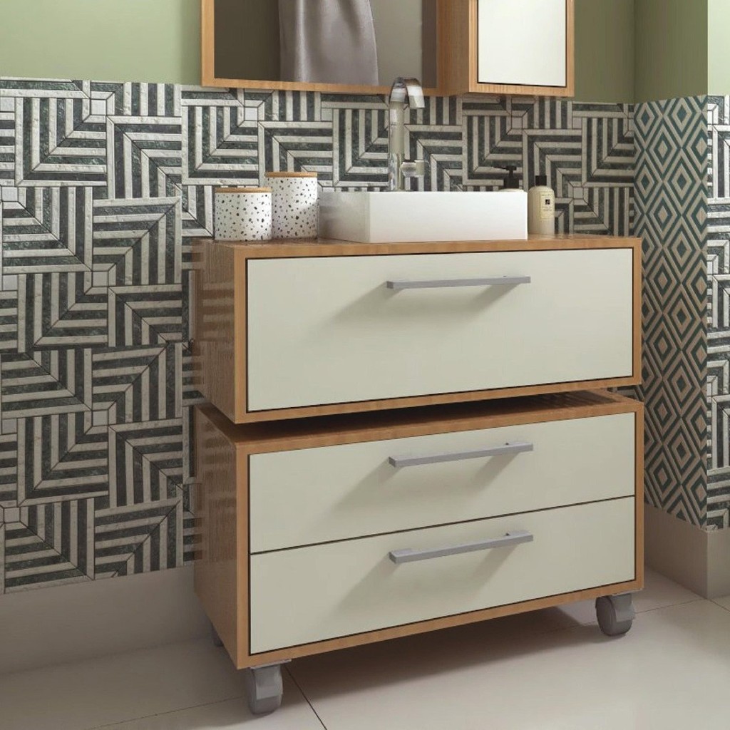 Gabinete Suspenso para Banheiro 80cm 1 Basculante e Balcão 2 Gavetas Alice Mel/Arenas em Oferta na Shopee Shopee
