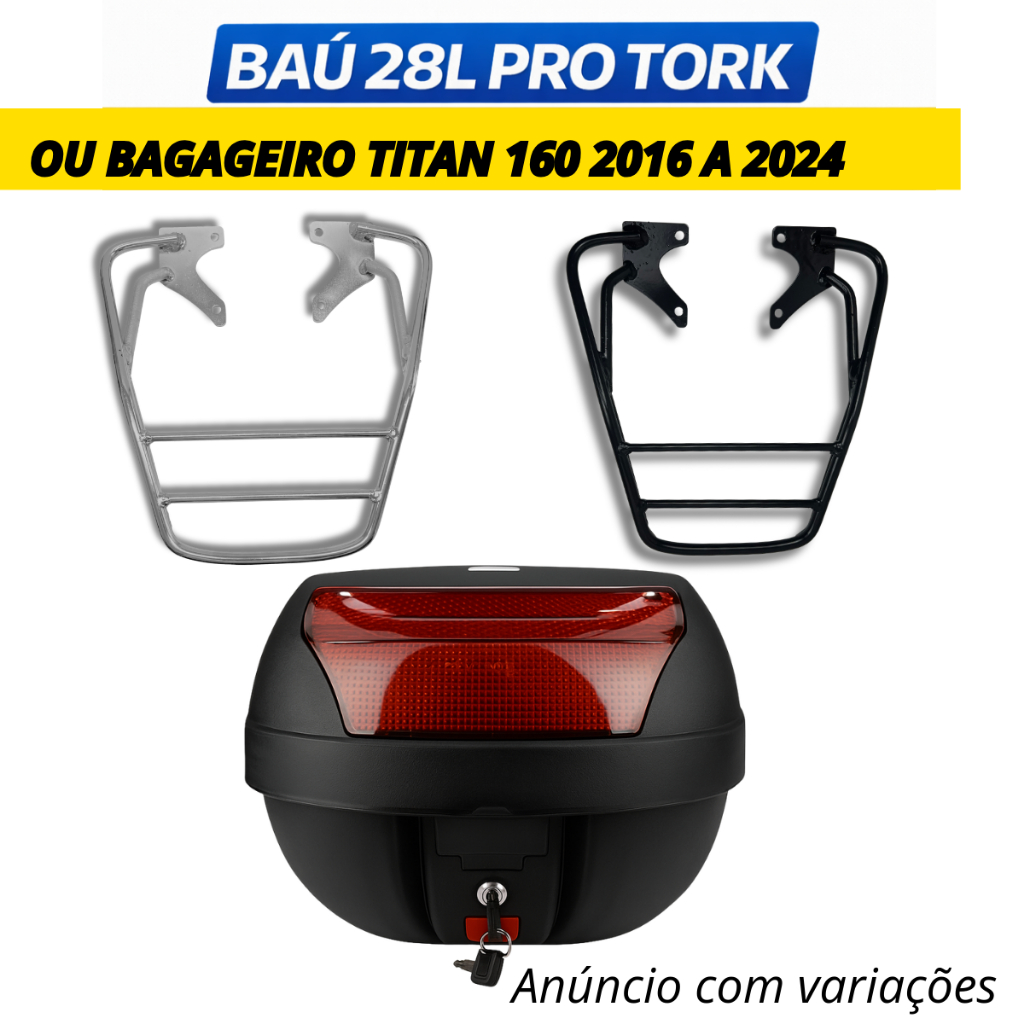 Baú 28L Pro Tork Titan 160 2016 a 2024 E ou Bagageiro Aço Maciço Preto/Cromado Variação em Oferta na Shopee Shopee