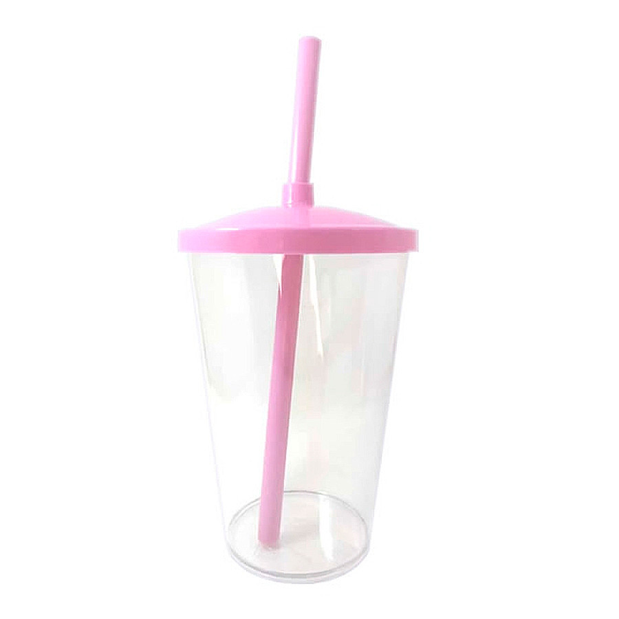 Copo de Plástico com Tampa e Canudo 300ml - Rosa Claro - 1 unidade - Rizzo em Oferta na Shopee Shopee
