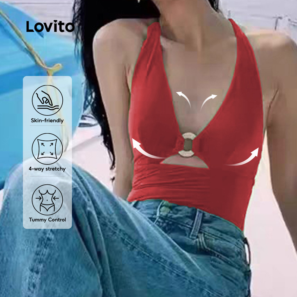 Lovito Fato de Banho Sexy Onepiece Sem Costas para Mulheres Vermelho primavera/verão LNE126X018 em Oferta na Shopee Shopee