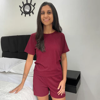 Pijama Feminino Adulto Manga Curta e Short Suede Canelado em Oferta na Shopee Shopee