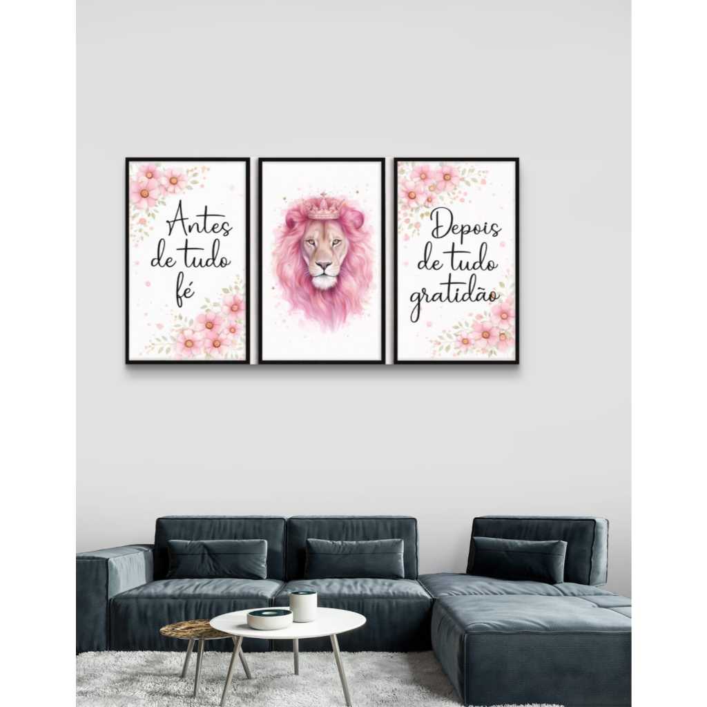 Kit 3 Peças Quadros Decorativos Leão Rosa Fé Gratidão Quarto Lindo em Oferta na Shopee Shopee