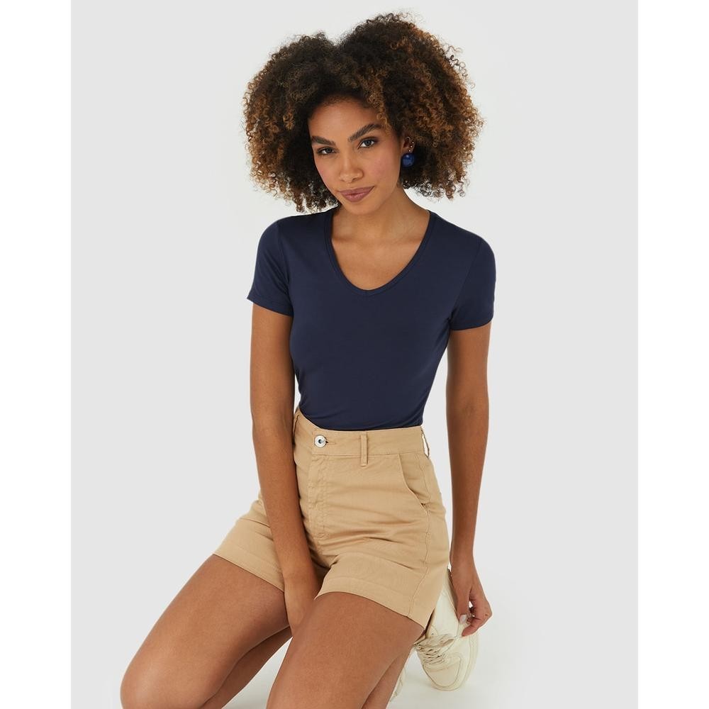 Blusa Básica Feminina Decote V Em Viscose Stretch em Oferta na Shopee Shopee