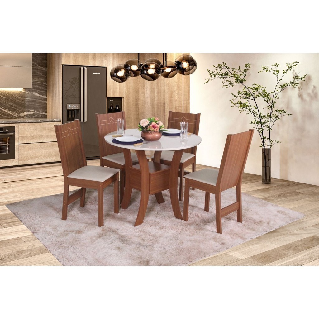 Conjunto Sala de Jantar com Mesa Redonda Ayla 4 Cadeiras Elane em Oferta na Shopee Shopee