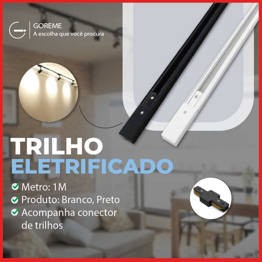 Trilho Eletrificado + Conector para Spot Trilho LED | Incluso manual de instalação | Preto ou Branco | NOVO MODELO em Oferta na Shopee Shopee