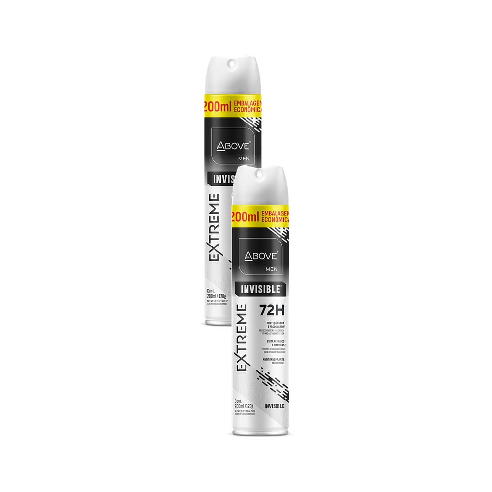 Kit 2 Desodorante Above Men Extreme Invisible Aerossol Antitranspirante 72h 200ml em Oferta na Shopee Shopee